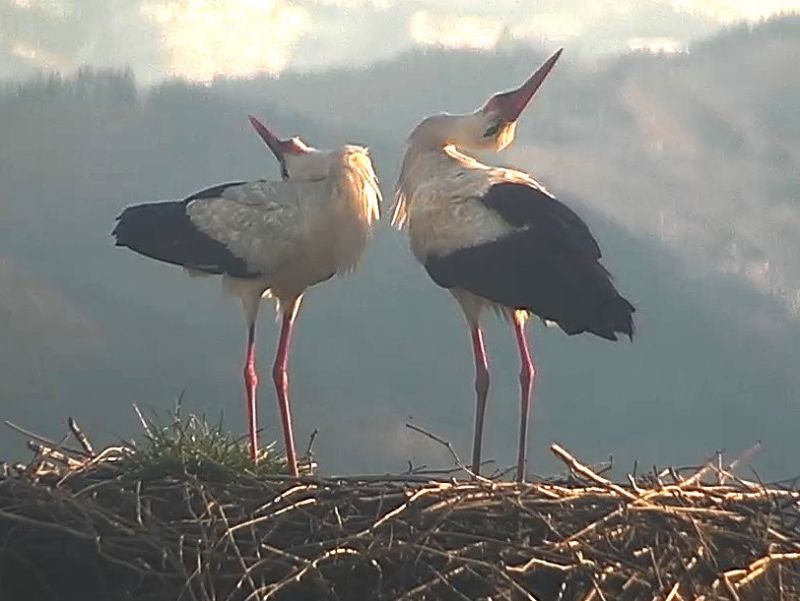 Pozorované dva bociany na hniezde bez krúžkov 22.4.2026. Párenie.