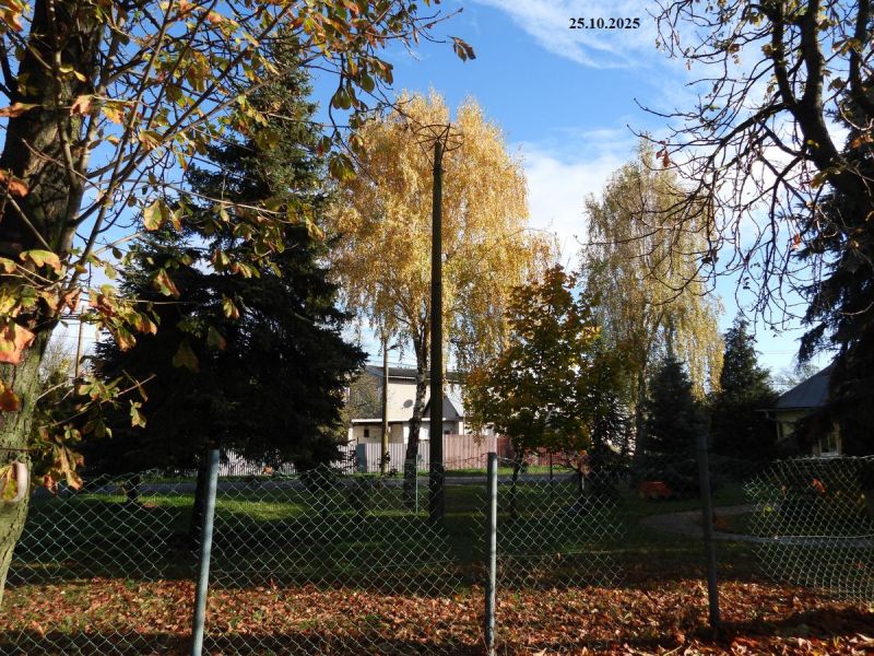 Umelá podložka na stĺpe urobená miestnymi občanmi pri dome č. 123. Podložka je v záhrade materskej školy. Je bez hniezdneho materiálu.