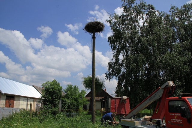 Poprvýkrát na tejto podložke, ktorá tu roky stála prázdna zahniezdili v r. 2010 po tom, čo im ktosi naložil v tomto roku na podložku konáre síce boli z ihličnanu ale prijali to