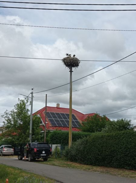 Na hniezde jeden bocian s hliníkovým krúžkom nad ľavým behákom a krúžkom Elsa na pravej nohe. Dali sa identifikovať len posledné dve čísla 60, krúžok znečistený trusom.