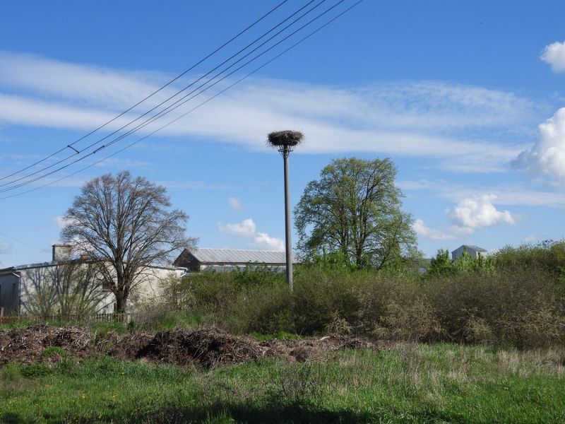 20.3.2026 podvečer, bocian stojí na nmiezde