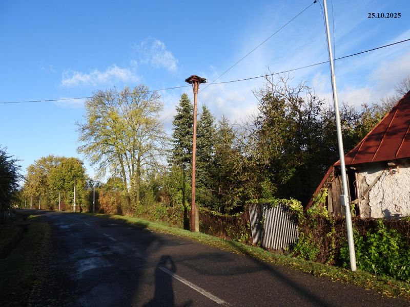 Hniezdo na podložke na telegrafnom stĺpe pri č.d.50. V r. 2012 v hniezde vyvedených 6 mláďat Asio otus okrúžkované 9.5.2012. Na podložku bol doložený hniezdny materiál.