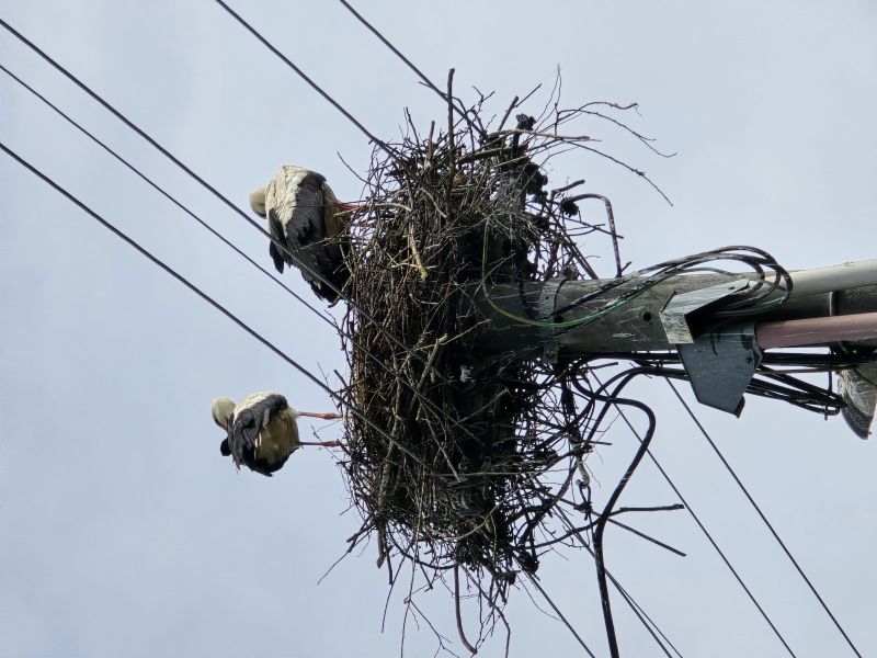 6.4. som videl 2.ex bez krúžkov na pripravenom stĺpe s podložkou v areáli PD neďaleko pôvodného hniezda. No 7.4. začali stavať hniezdo na križovatke cca 100m od pripravenej podložky. 19.4. 1.ex už sedel.