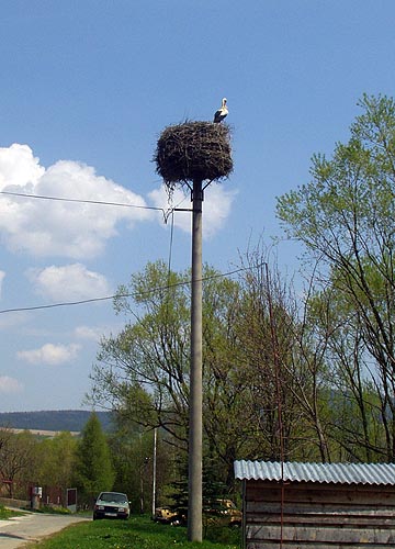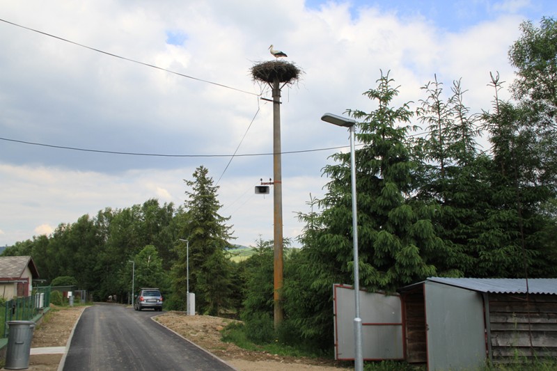 Budem o situácii informovať Správu NP Pieniny z hľadiska ochrany to patrí do jej kompetencie. Podľa všetkého nedali na stĺpy odpudzovače, aby sme ho donútili presťahovať sa na podložku pripravenú pri ceste na hosp. dvor. Budeme ho musieť presťahovať ak by mal náhodou mláďatá aj s celým hniezdom.