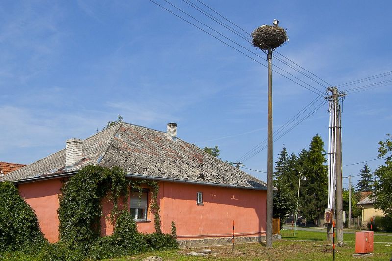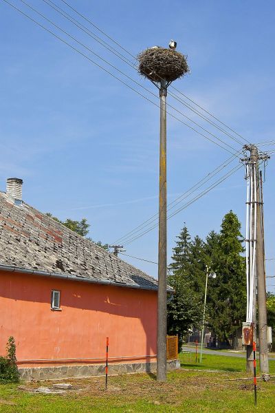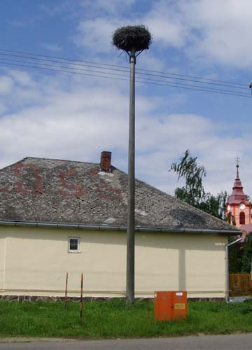 Hniezdo na samostatnej hniezdnej podložke pri dome č. 135. alebo pri pomníku č.d.161.
