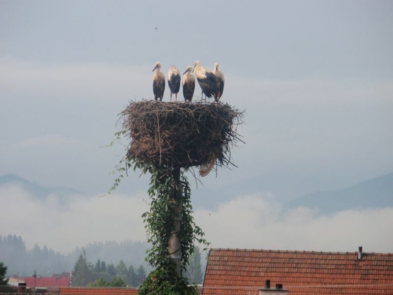 Tento rok vychovali bocianí rodičia na hniezde v našej záhrade 3 mláďatá,vzorne sa o ne starali a mladé v poriadku absolvovali prvé prelety a v poriadku odleteli všetky 3 .Tohoto roku odleteli mladé už 15.augusta a rodičia 18.augusta,podľa našich pozorovaní o 2 týždne skôr. Jedného mladého bocianika rodičia vyhodili z hniezda.