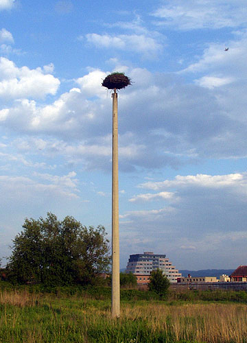Ako hovorí Peter Kovalik tak možno keď pri starej škrobarne teraz Neo zóna a super center 1 možno to staré hniezdo preložili na toto bocianné hniezdo