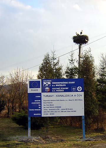 Hniezdo na elektrickom stĺpe s podložkou pri obchode. Hniezdo bolo zhodené po?as búrky 19.11.2004. Elektrikári poškodenú podložku narovnali, no bociany si po prílete vybrali funkčný elektrický stĺp (bez podložky) hneď na druhej strane cesty. Keďže došlo k zmene postavenia hniezda rozpísali sme túto zmenu na aktuálne stanovište ako nové hniezdo na elektr. stĺpe a neskôr na podložke.