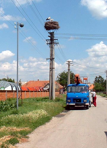 V roku 2014 je obsadené hniezdo na podložke, druhé hniezdo na vedľajšom stĺpe je nevyužité. 2 mláďatá - sčítanie 8.7.2014