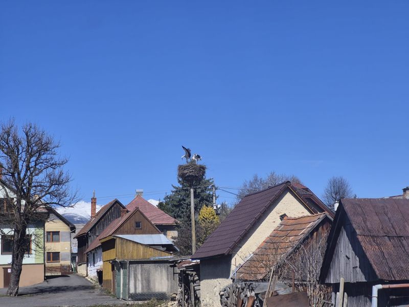 Dňa 20.04.2018 sa na hniezde bociany nenachádzali, avšak hniezdo bolo čerstvo potriesnené trusom.