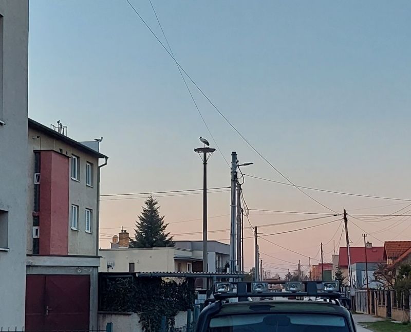24.04. bol pozorovaný bocian na hniezde. Volne stal.