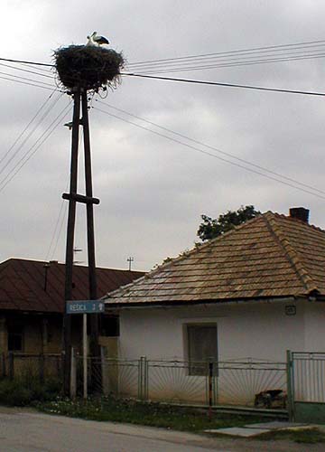 Hniezdo d?a 23.3.2007 pri vedení nového elektrického vedenia premiestnili pracovníci energetického závodu na nový stĺp.