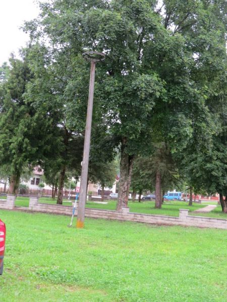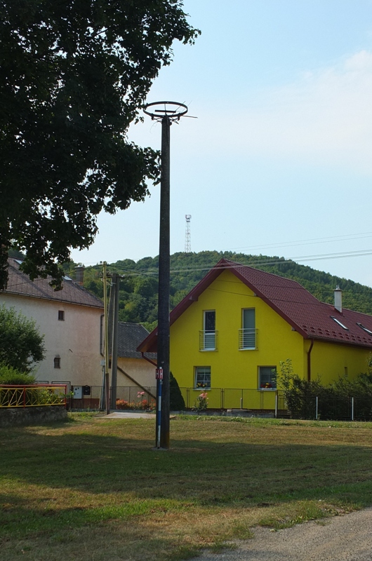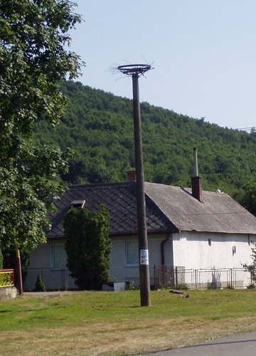 Hniezdna podložka na samostatnom stĺpe pri č. d. 56 veľmi blízko pri lipe.