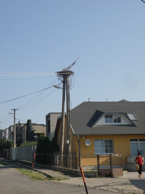 Náhrada za hniezdo na stĺpe elektrického vedenia pri potravinách na začiatku rómskej osady. Postavená v roku 2012.