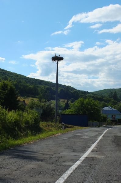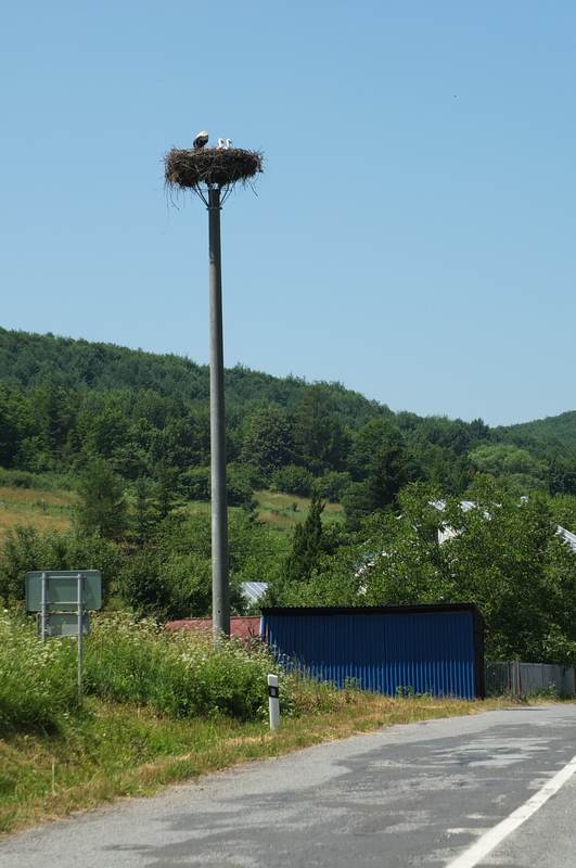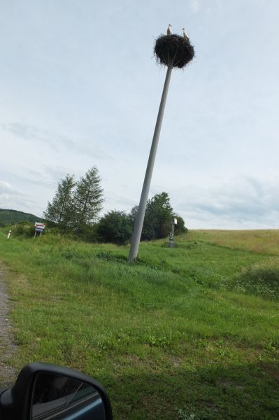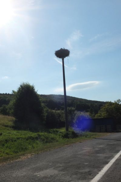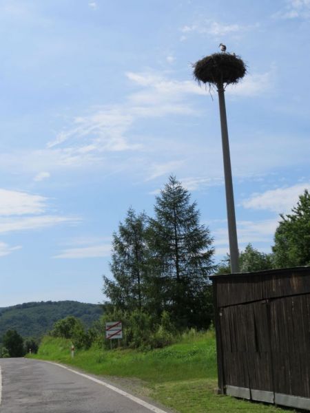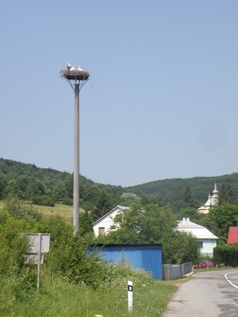 1.4.2021 na hniezde párik, pozorované pri prejazde obcou