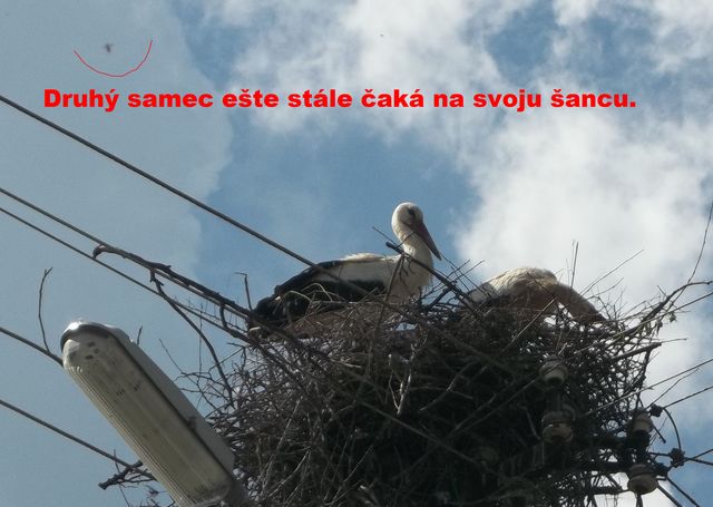 A predsa sa točí -- nie prileteli! Periférny pohľad ma varoval, v hniezde sa niečo deje !!! Otočím hlavu a pár radostne tancuje v hniezde, upravuje. Tak predsa.