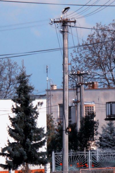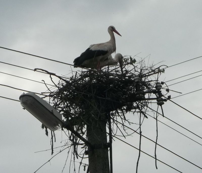 Hniezdo začínajú stavať na el. stĺpe pred obchodom !!! Je to historicky prvý pokus o zahniezdenie za posledné storočie