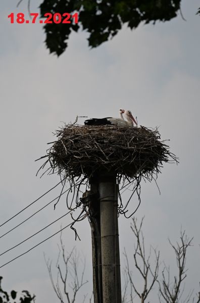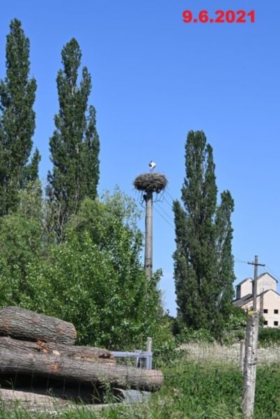 25.4.2021-hniezdo je prázdne, zarastené, 9.6.2021-prítomnosť 1 bociana, upravuje hniezdo, bez vajíčok, 18.7.-2 bociany sedia v hniezde.