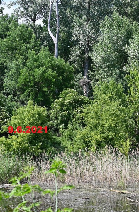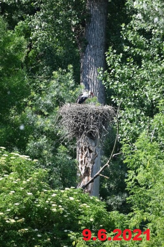 9.6.2021 - na hniezde dospelý bocian, 1 mláďa a 2 vajíčka, 18.7.2021 v hniezde 1 mladý bocian a v blízkosti-v mokradi 2 dospelí bociany (pravdepodobne rodičia)