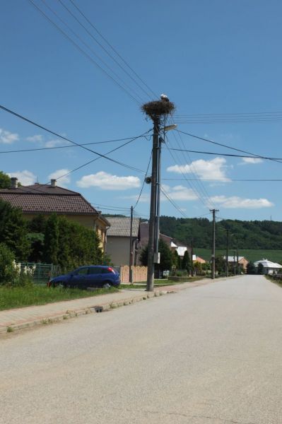16.4.2022.Pár bez krúžkov. Hniezdo si postavili vedľa zaniknutého hniezda na vedľajšom stĺpe elektrického vedenia.