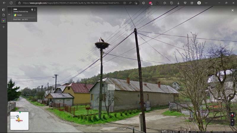 Hniezdo už neexistuje, bolo zhodené ešte v roku 2013 a postavili stĺp s podložkou, na ktorom bociany úspešne hniezdia.