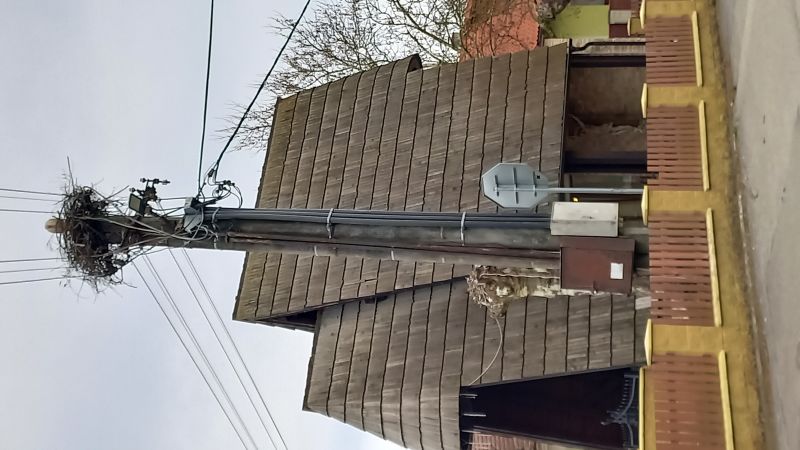 Hniezdo bolo po vyhniezdení a odletení bocianov zhodené a bola osadená zábrana proti hniezdeniu.