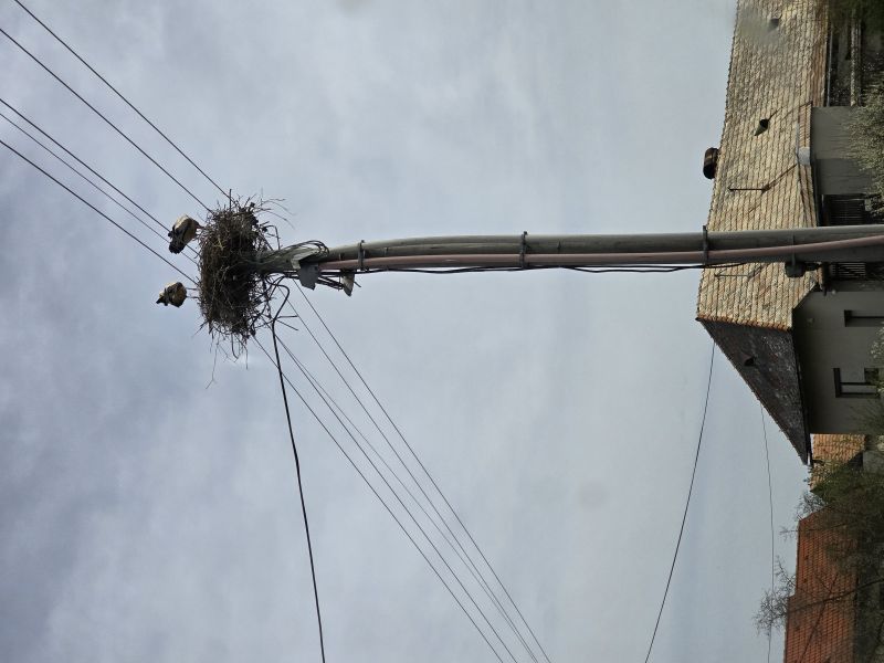 6.4. som videl 2.ex bez krúžkov na pripravenom stĺpe s podložkou v areáli PD neďaleko pôvodného hniezda. No 7.4. začali stavať hniezdo na križovatke cca 100m od pripravenej podložky. 19.4. 1.ex už sedel.