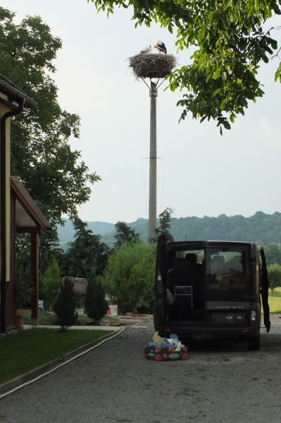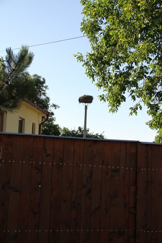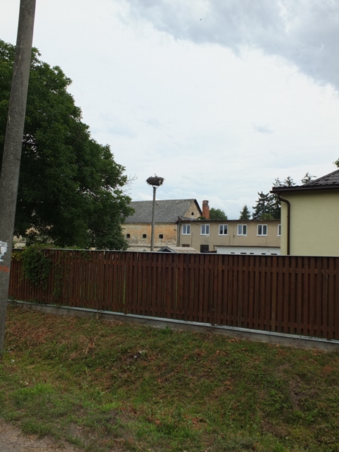 Hniezdo bolo preložené na podložku pri letisku. Bociany si pravdepodobne postavili hniezdo na komíne vedľajšej budovy.