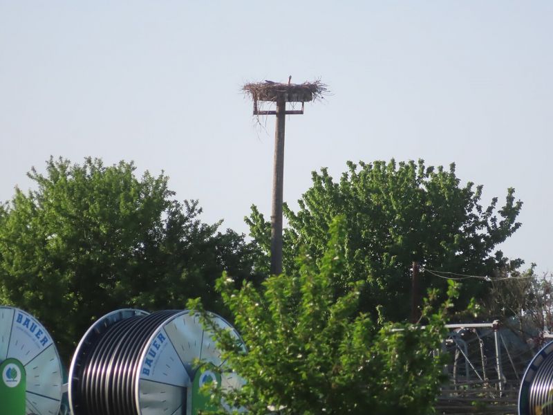 Kontrola hniezda dňa 11.7.2025, 4 mláďatá. Samostatný stĺp s podložkou bol osadený pravdepodobne spolu s druhým stĺpom na lokalite v tesnej blízkosti smetiska v roku 2014-2015. Podložka s výpletom bola doteraz nevyužitá, po konkurenčnom boji o druhé hniezdo pár sa presunul a zahniezdil.