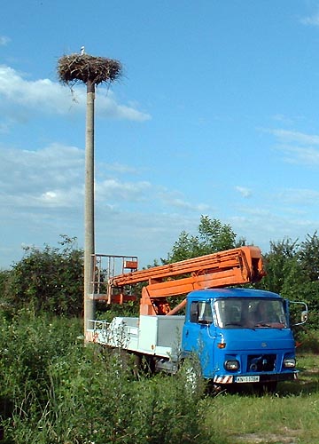 Hniezdo sa nachádza na samostatnom stĺpe s podložkou v areáli vodohospodárskeho podniku pri rieke Váh. Hniezdenie naposledy v roku 2010.