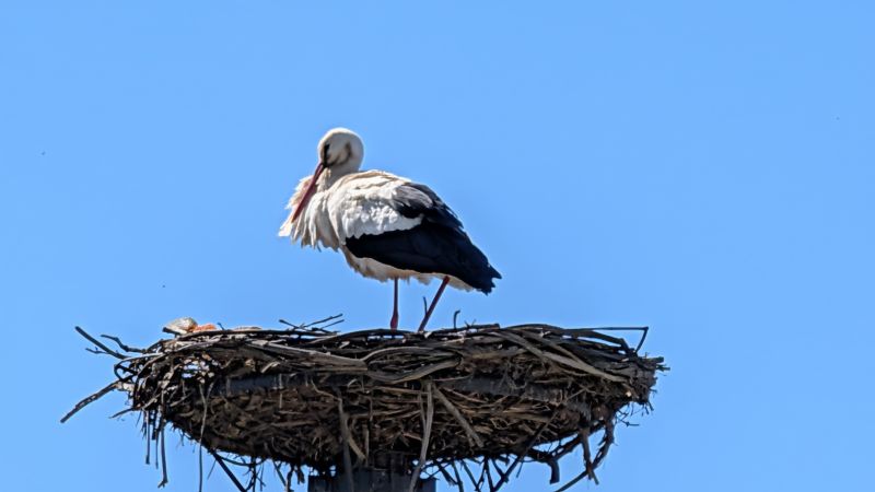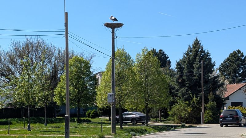 Na hniezde som videl 18. 4. 2026 jedného bociana, zrejme len odpočíval a nechystá sa tam usadiť.