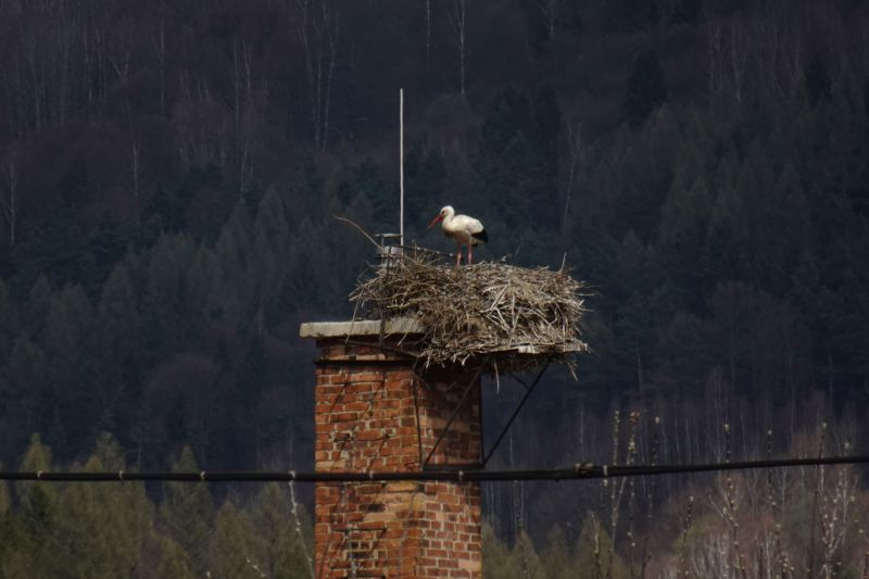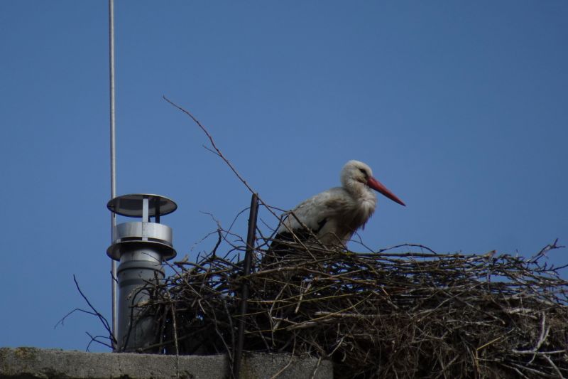 Hniezdo bocianov v KNM na podložke na komíne 22.07.2018 09:05