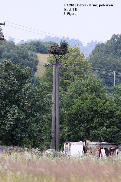 Toto je druhé z dvoch hniezd v Krnom pri pekárni. Je na dvojitom stĺpe vyššie nad pekárňou pri dome č. 91 (spomínaná aut. zastávka Detva - Krné, Homolovci). T.r. neobsadené. Pridávam foto...