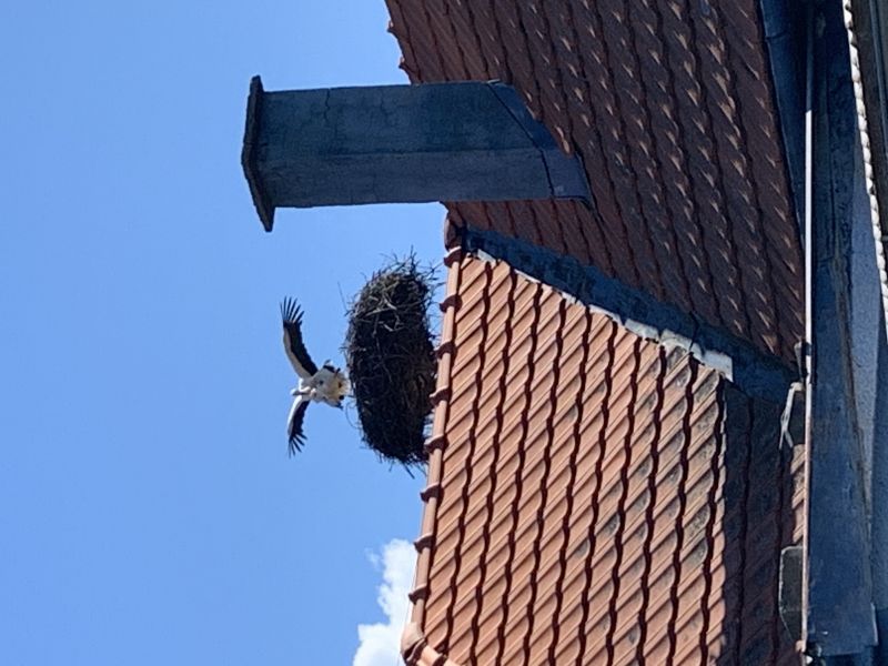 V polovici marca priletel bocian, 26. marca priletel druhý bocian.