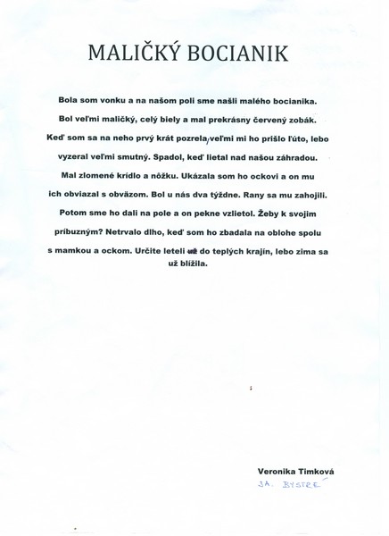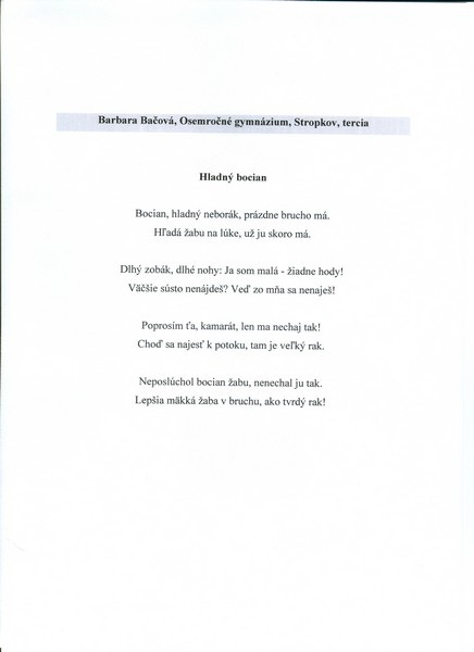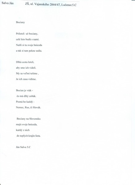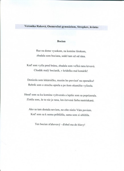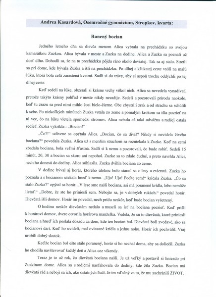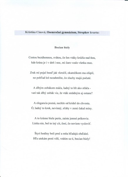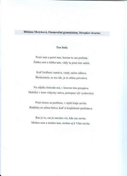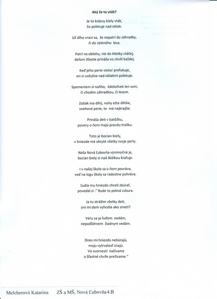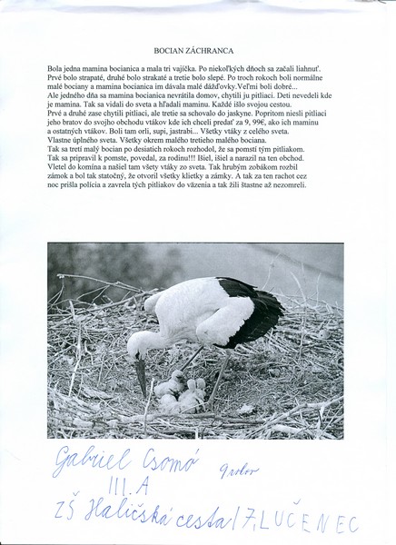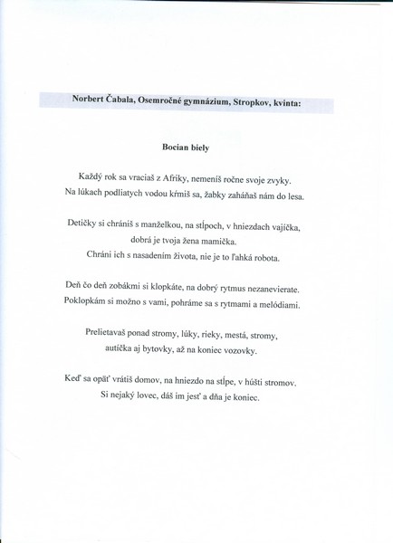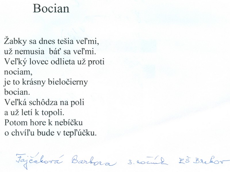 Výsledky tvorivej súťaže v rámci kampane Vták roka 2014 - bocian biely