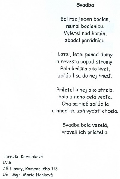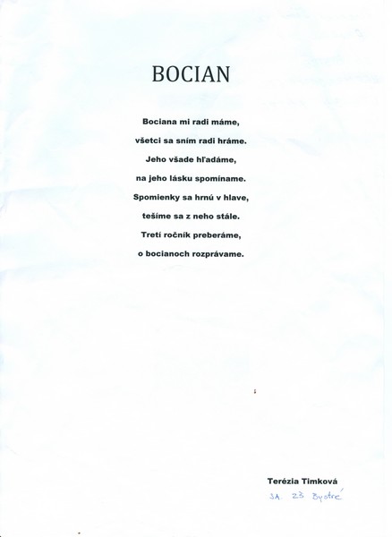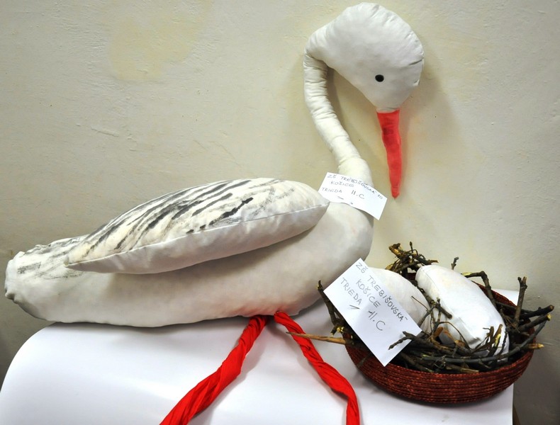 do súťaže dostali keramické reliéfy s bocianom. Od kolektívu jednej školy sme dostali školský časopis Bocian.